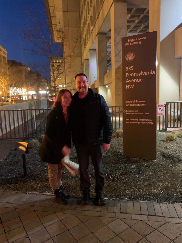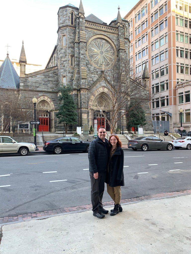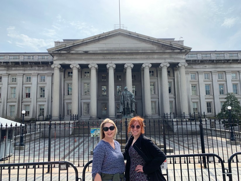 Amanda and I touring around D.C. In front of the Treasury Department building.