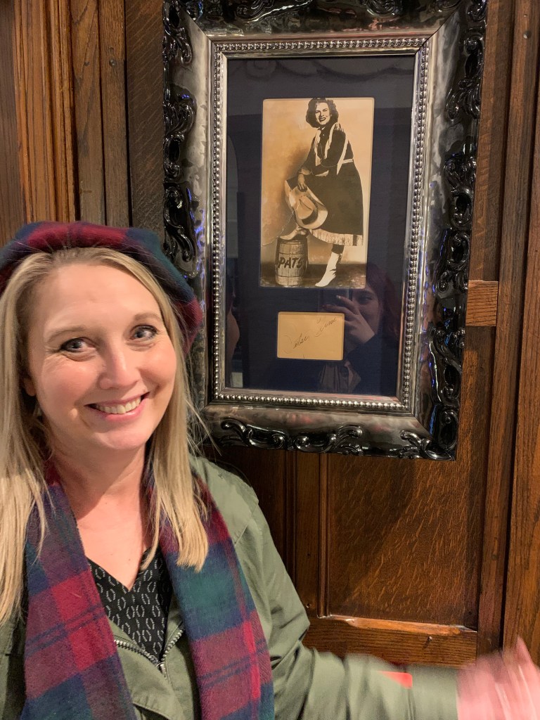 Me at the Hard Rock Cafe in front of picture of Patsy Cline.