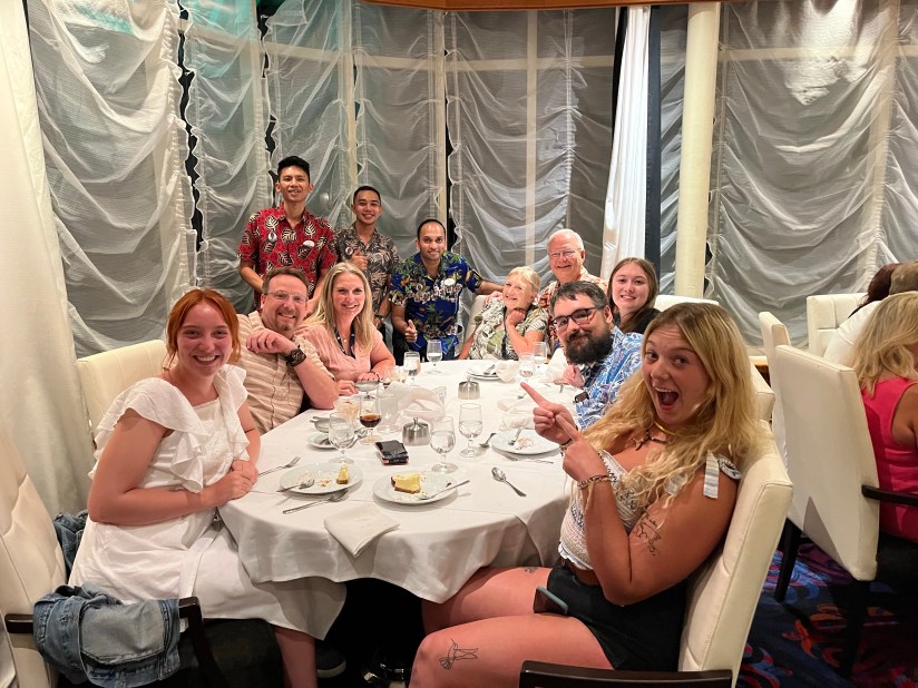Our vacation was an eight-day cruise to the Caribbean in celebration of my parent’s 50th Wedding Anniversary! We had such a wonderful time! What I really noticed was that, even though the cruise ship held a lot of people, we were not treated as a crowd, but as individual people. Our family met at the same table for dinner every night, and our servers knew our names. When they saw us in other areas, they would say hello! We knew their names as well: Idam, Winscel, and Jude. Our room attendant was Junior, and he took good care of us! We also got to know Nate, who played and sang at a piano bar on the ship. The personal kindness by the people who worked on the ship really made the trip for me. It wasn’t the fancy ship and amenities, although they were definitely nice, but the individual people, who really saw us and showed kindness that made the difference. There are good people everywhere!