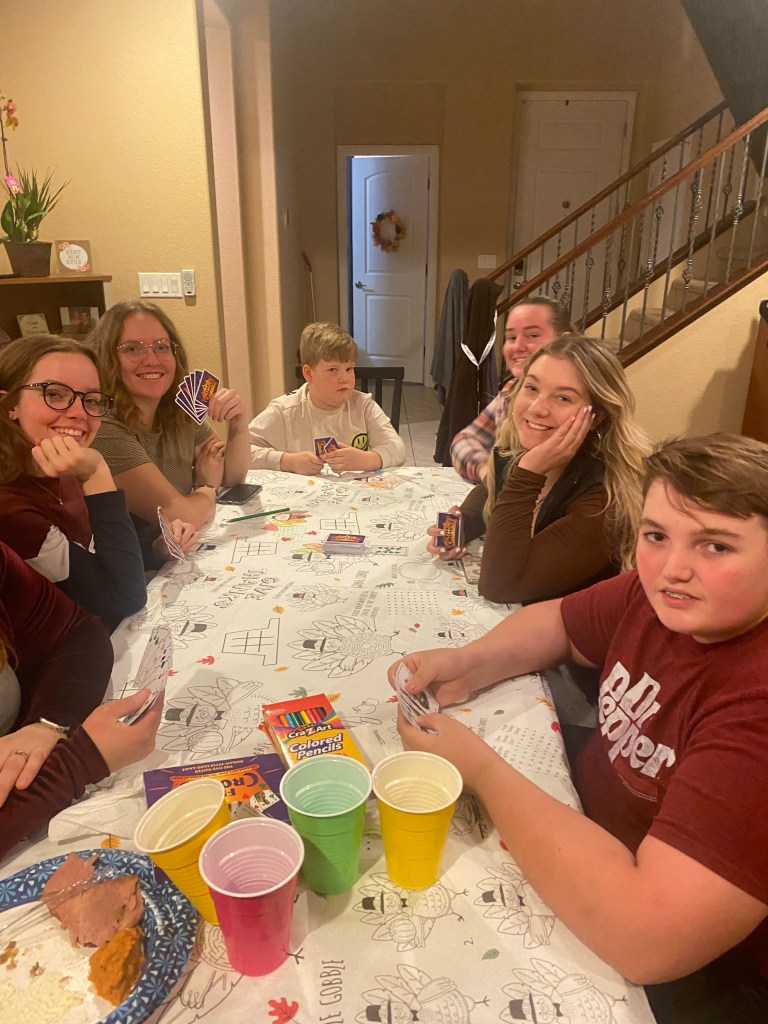 On Thanksgiving evening (Thursday), Mom Reece’s house was hopping with people! Ginger was over with her family. including her oldest, Julia, who is married to Kenneth and they have two adorable little boys, Julia and Kenneth got married about one month before my Katelynn and Gabe. I love to see Julia because she is always happy to see me! She has the best smiles and hugs! Macy it a little bit younger than Julia. and is a fabulous aunt! Amanda and Macy are the same age. Macy just got her bachelors’ degree at UNLV and is working to get into school to be a Physical Therapist. Melody is Annalyse’s age and lives in Cedar City while she goes to SUU. She is an amazing violinist and plans on opening her own studio one day. Jenna is the youngest, and is a senior in high school. She is an award -winning swimmer, and is very close to Annalyse, as cousins go. I’m so proud of those girls! They are like my own girls and I couldn’t love them more.